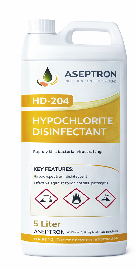Chlorine-based disinfectant for high-risk hospital areas including blood spills, toilets, and infectious contamination.