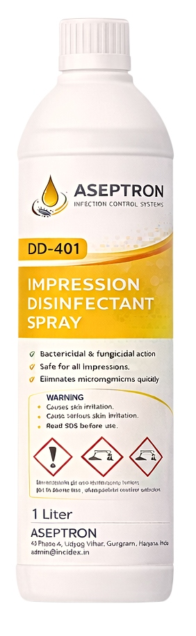 Specialized spray for safe disinfection of dental impressions prior to laboratory transfer.