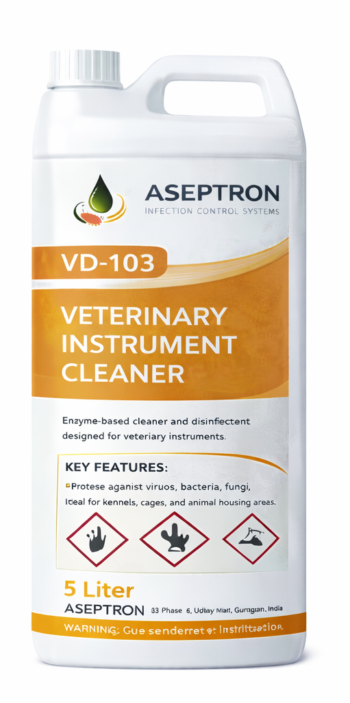 ASEPTRON Veterinary Instrument Cleaner is an enzyme-enhanced cleaning concentrate formulated for pre-cleaning and ultrasonic cleaning of veterinary surgical instruments.