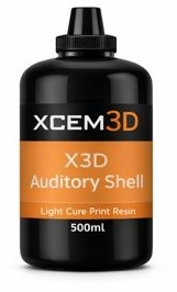 UV curing premium resin (wavelength 385 nm) for generative manufacturing of hard ITE shells. Markedly lower viscosity than conventional materials (=> reduced loss of material, easier cleaning). Maximum construction safety, even for finest support structures, due to high initial hardness. Very high mechanical flexural strength and fracture resistance, without being brittle. Accelerated throughput by short light exposure times. Biocompatible & Bisphenol A free. Medical device Class IIa, standard colours: beige, black, white, intensive blue, intensive red